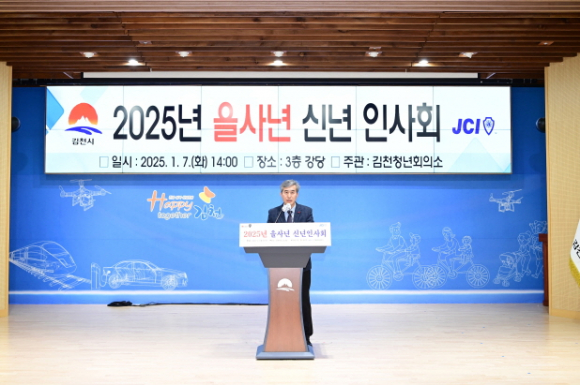 |  | | | ⓒ 김천내일신문 | | 2025년 푸른 뱀의 해(을사년)를 맞아 힘찬 시작과 새로운 도약을 다짐하는 ‘신년 인사회’가 1월7일 김천시청 3층 강당에서 열렸다.