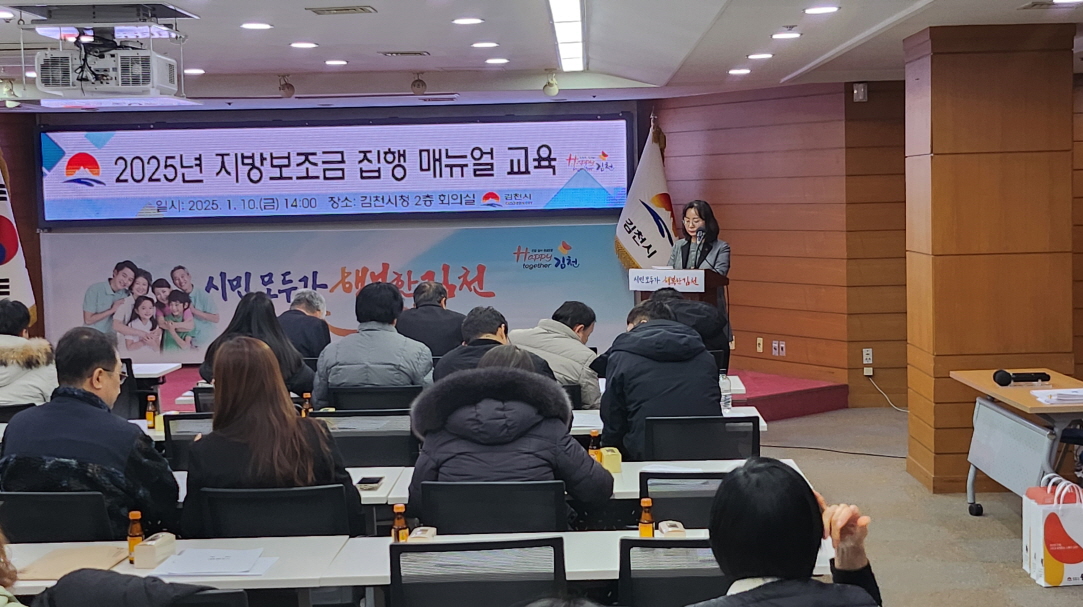| 김천시는 1월 10일 김천시청 2층 회의실에서 장애인 단체 및 시설, 장애인 바우처 제공기관 종사자 등 총 60여 명을 대상으로 「2025년 지방보조금 집행 매뉴얼 교육」을 실시했다.