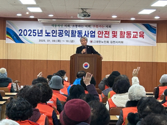 |  | | | ⓒ 김천내일신문 | | 김천시노인지회(지회장 이부화)에서는 1월 9일과 10일 양일간 김천시 노인지회 2층 대회의실에서 노인공익활동 깔끄미사업 참여자 505명, 급식지원사업 참여자 105명을 대상으로 안전 및 활동교육을 실시하였다.
