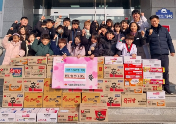 한편, 힘찬청운태권도는 관장과 원생들이 취약계층을 위한 라면 기부를 매년 이어오고 있다. |
