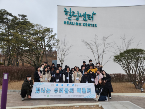 | 경상북도김천교육지원청(교육장 모태화)은 겨울방학 기간을 이용해 1월 13일부터 24일까지 2주 동안 겨울 계절학교를 운영하고 있다. 이번 겨울 계절학교는 김천 관내 중·고등학교 특수교육대상학생 40여 명을 대상으로 실시하며, ‘체험과 힐링으로 엮어가는 우리들의 따뜻한 시간’이라는 주제로 김천시장애인종합복지관에 위탁 실시된다.