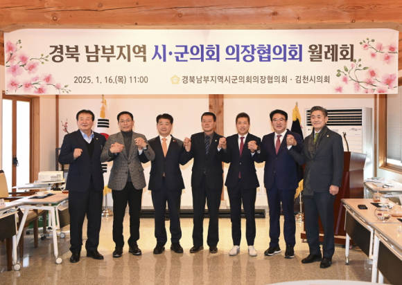 | 김천시의회(의장 나영민)는 지난 1월 16일 사명대사공원 건강문화원에서 경북 남부지역 시군의회의장협의회 1월 월례회를 개최했다. 이번 회의는 김천시의회가 주관했으며, 경북 남부지역 주요 현안에 대한 논의와 정보 교류의 장이 마련되었다.