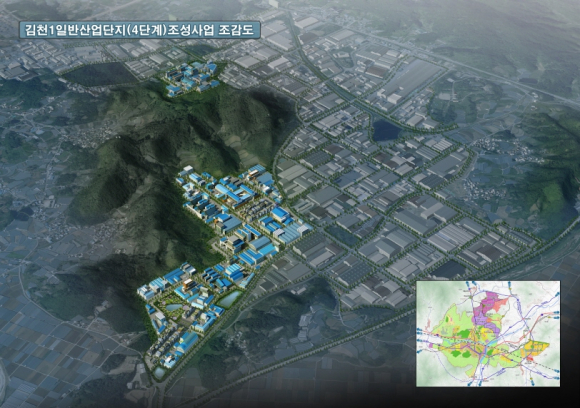 | 김천시는 지난 1월 16일, 124만㎡(38만 평) 규모의 김천1일반산업단지 (4단계)조성사업이 경상북도로부터 승인ㆍ고시되었다고 밝혔다. 이로써 김천시 어모면 다남리, 개령면 신룡리, 대광동 일원에 추진되고 있는 산업단지 조성사업이 본격화된다.