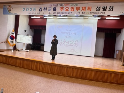 | 경상북도김천교육지원청(교육장 모태화)은 1월 16일 김천학생문화예술센터 드림마루에서 관내 유‧초‧중‧고‧각종학교 교(원)장 및 학교운영위원장, 학부모 대표 등 100여 명을 초청하여 2025 김천교육 주요업무계획 설명회를 개최하였다.