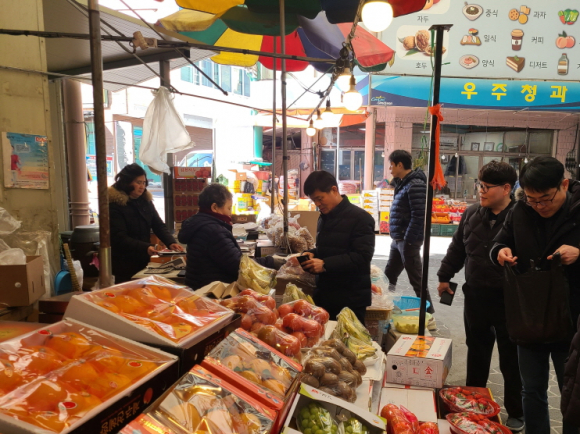 | 김천시 상하수도과에서는 설 명절을 앞둔 지난 1월 17일, 전통시장 상인들을 응원하고 지역 경제에 활력을 불어넣기 위해 평화시장에서 장보기 행사를 진행했다.