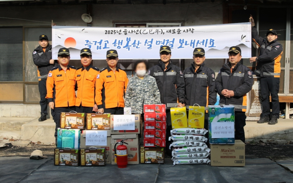 | 김천소방서(서장 안영호)는 설 명절을 맞아 나라를 위해 헌신하신 유공자들의 숭고한 희생정신을 기억하고 감사의 마음을 전하기 위해 국가유공자 가정을 방문해 위문품을 전달했다고 1월 23일 밝혔다.