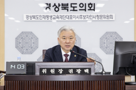 |  | | | ⓒ 김천내일신문 | | 권광택 행정보건복지위원회 위원장(안동, 국민의힘)은 지난 1월 17일 박성민 포항의료원장 후보자 인사청문회를 실시했다