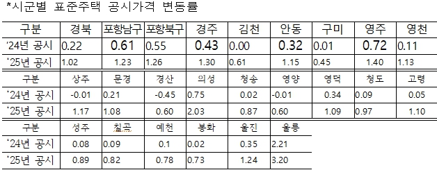 | 2025년 1월 1일 기준 경북도 내 표준주택 가격이 결정·공시됐고, 지방자치단체는 이를 토대로 개별주택 가격을 정하게 된다.