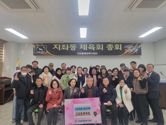 | 지좌동 체육회(회장 김기옥)는 1월 24일, 2025년도 정기 총회 개최와 더불어 김천복지재단에 성금 100만 원의 성금을 기부했다.