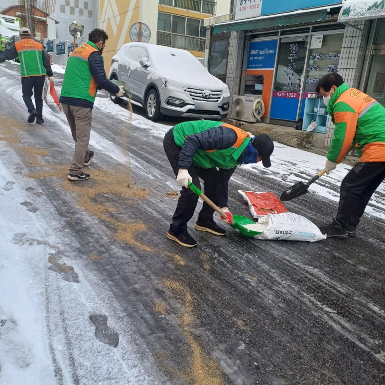 이상만 단장을 비롯한 자율방재단원들은 휴일에도 불구하고 새벽부터 내린 많은 눈으로 인해 명절을 맞아 고향을 찾은 귀성객들과 시민들이 겪게 될 안전사고와 통행 불편을 신속히 해소하기 위해 이른 아침부터 집결했다. 이들은 주요 통행로와 결빙 취약 지역에 제설제(염화칼슘, 빙방사)를 살포하고, 장비가 미치지 않는 인도 및 이면도로 곳곳에 삽과 빗자루 등으로 직접 눈을 치우며 시민 안전을 최우선으로 제설작업에 매진했다.