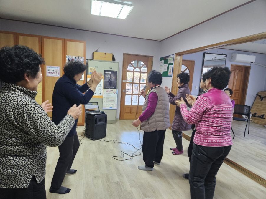 이날 남산경로당에는 어르신 15여 명이 참석하여 추운 겨울 움츠러든 몸을 건강 체조로 깨우는 시간을 가진 후, 신명 나는 노래를 부르며 스트레스를 해소하고 친목을 도모하는 시간을 가졌다.