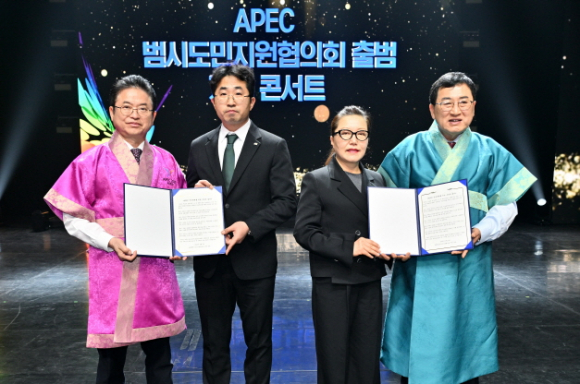 |  | | | ⓒ 김천내일신문 | | 경상북도는 2025년 APEC 정상회의 성공을 기원하며 2월7일 경주예술의전당에서 ‘APEC 범시도민지원협의회 출범식 및 기념 음콘서트’를 가졌다.