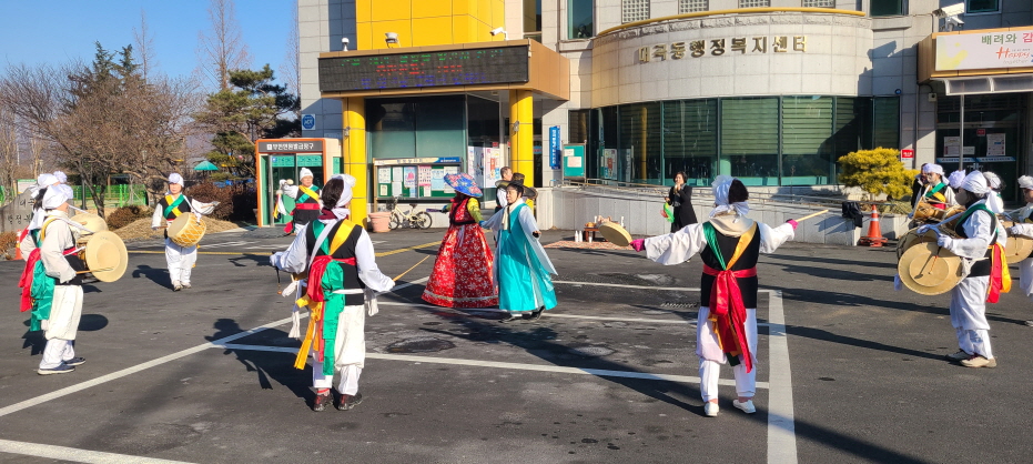 지신밟기는 마을의 지신을 달래고 악귀를 쫓아냄으로써 가정과 지역 사회의 평안과 복을 기원하는 전통 의식으로, 대곡동 농악단원들은 지난 9일과 10일 이틀간 행사를 진행하며 대곡동 행정복지센터와 인근 주민들에게 흥겨운 풍물과 덕담을 전했다.