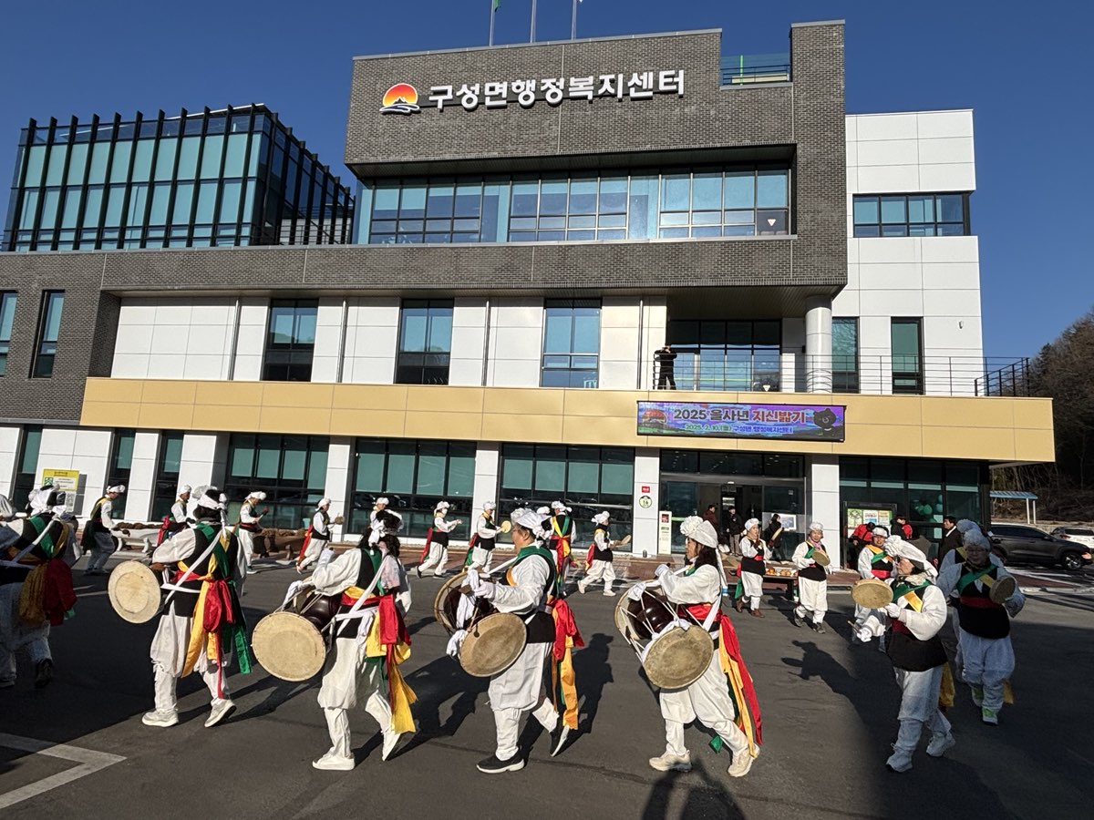 이혜정 구성면장은 “2025년 을사년 푸른 뱀의 해를 맞아 우리 고유의 세시풍속인 지신밟기를 신명 나게 펼쳐주신 거북농악단에 감사드린다. 이번 지신밟기 행사가 면민들의 화합을 이끄는 계기가 되고, 면민 모두가 희망차고 복이 가득한 한 해가 되길 바란다.”라고 말했다. |