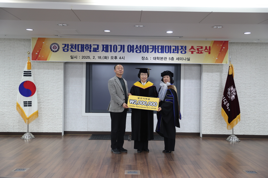 윤옥현 총장은 "여성아카데미 과정에서 쌓은 지혜와 경험은 앞으로 여러분의 삶에 큰 자산이 될 것이며, 김천대학교 여성아카데미가 여성 리더들을 양성하는 중요한 역할을 해왔듯이 여러분들도 그동안의 배움을 바탕으로 여성아카데미가 명실상부하게 김천을 대표하는 여성 리더들의 산실로서 자리잡는데 일원이 되어 주시기를 바란다."라고 수료생들을 축하했다.