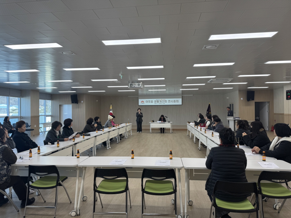 | 김천시 아포읍(읍장 이서정)은 2월 20일 아포읍 행정복지센터 2층 강당에서 안종임 생활개선회 회장 외 회원 30여 명이 참석한 가운데 아포읍 생활개선회 2025년 첫 연시 총회를 개최했다.