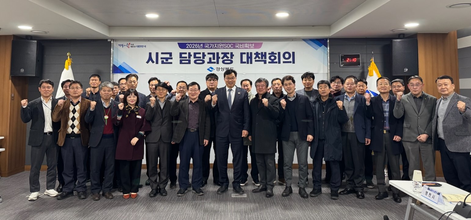 경북도는 2월 24일 도청에서 22개 시군 도로ㆍ철도 분야 담당과장 등 50여 명이 참석한 가운데 2026년 국비 확보와 지역 현안 사업의 국가계획 반영을 위한 대책 회의를 개최했다.