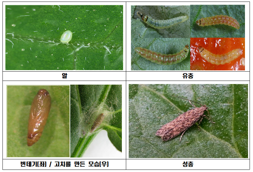 토마토뿔나방은 외래 병해충으로 토마토의 잎, 줄기, 열매를 갉아 먹어 수확량을 감소시키는 해충이며, 특히, 친환경농업을 실천하는 농가들에 더욱 큰 피해가 우려되는 해충이다.
