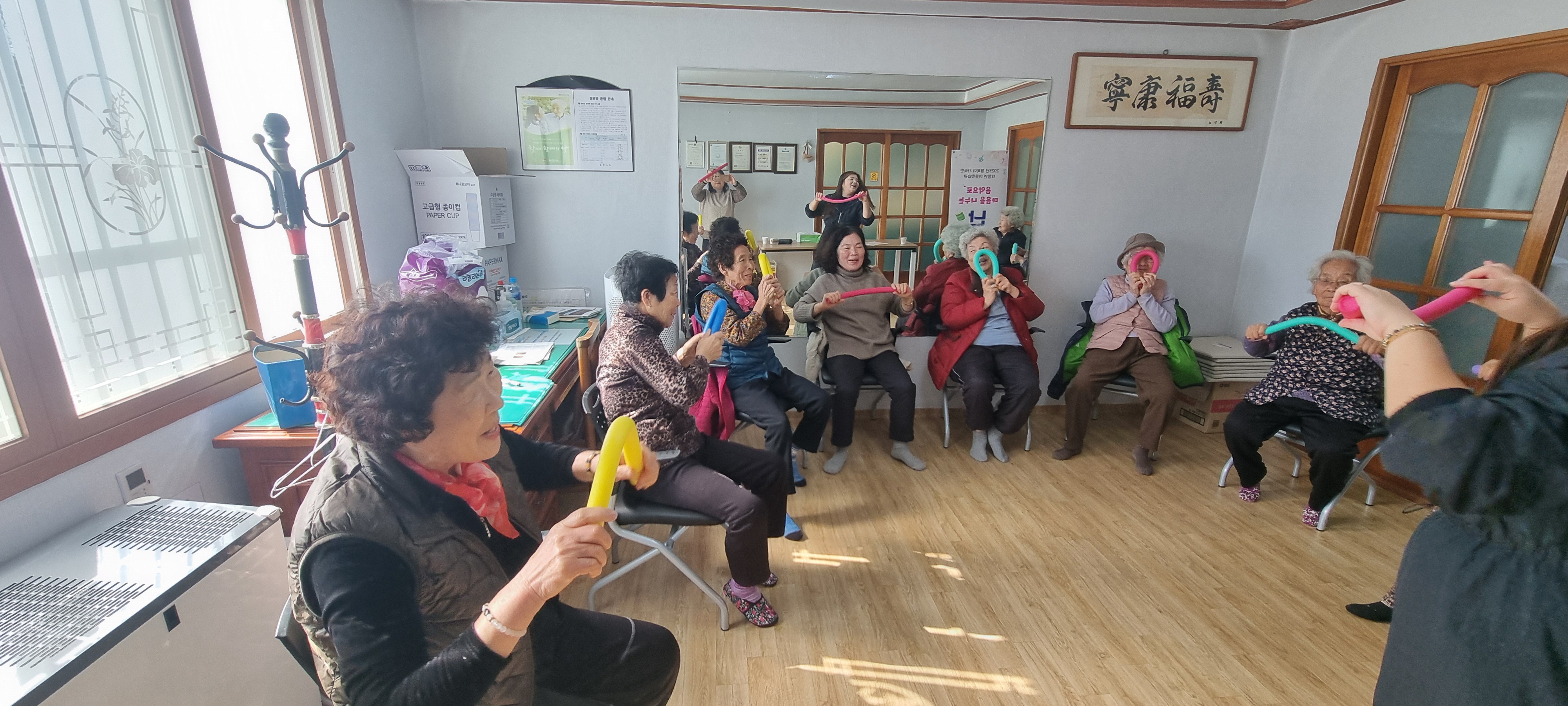 이번 프로그램은 대항면 관내 26개 경로당을 순차적으로 방문하여 뮤지컬 스푼과 노래를 배우는 기회를 제공하고, 주민들이 스트레스를 해소하며 공동체 의식을 높이는 데 중점을 두었다.