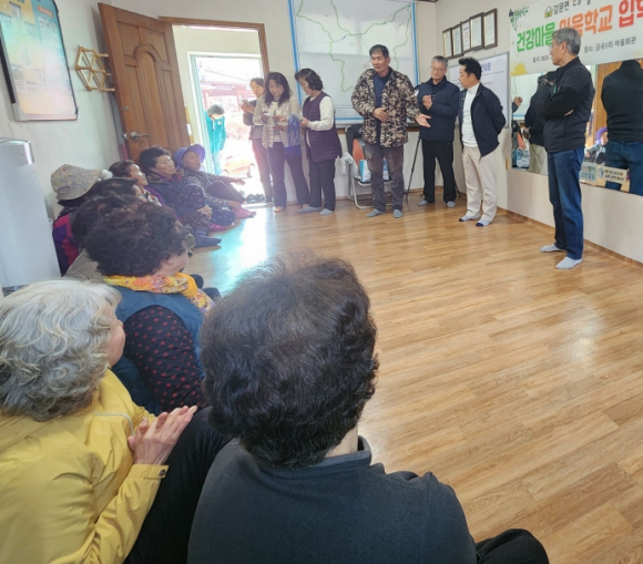 | 김천시는 3월 10일 감문면 금곡1리 마을회관에서 건강마을 조성 사업 내 시범 사업으로 추진하는‘마음 학교 기억·행복·문 열기’(이하 마음학교 기행문) 입학식을 가졌다.