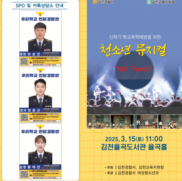 김천경찰서, 신학기 학교폭력예방 뮤지컬 ‘NO! PUNCH’ 공연 개최