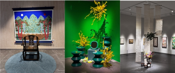 | 봄빛을 닮은 화훼화를 빛나게 하기 위한 다양한 포토존과 연출공간도 마련하였다. 김천시립박물관 1층 로비에서는 전통회화 전시에 어우러지는 어좌와 일월오봉도 포토존을 마련하여 방문객의 눈길을 끌 예정이다. 특별전시실 전시공간 곳곳에는 싱그러운 봄을 담은 개나리 포토존, 그리고 품격있고 우아한 화훼화와 어우러지는 두루마리 포토존 등을 조성하였다.