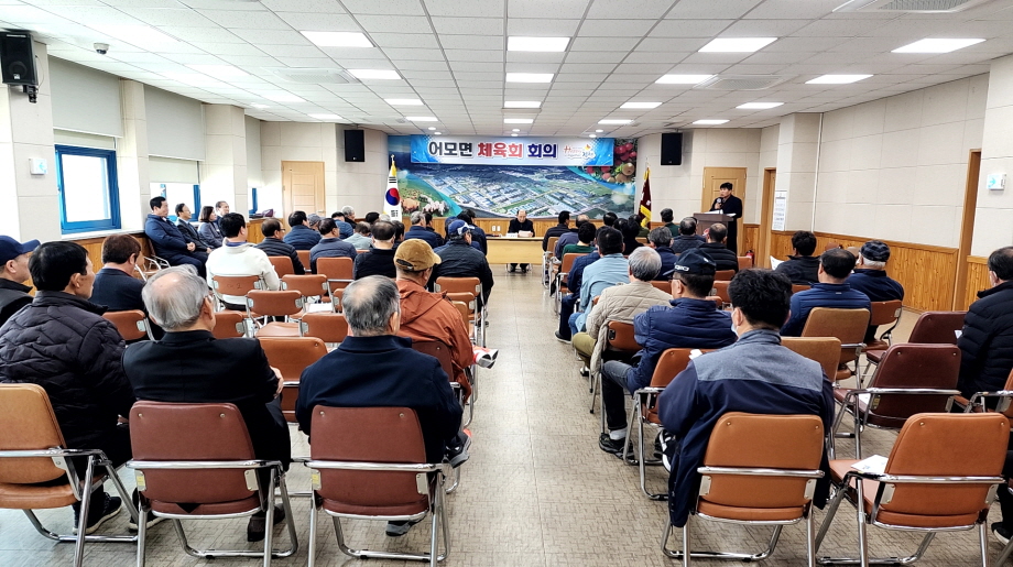 | 어모면체육회는 3월 11일, 어모면행정복지센터 2층 회의실에서 2025년 정기총회를 개최하였다. 이번 회의에서는 임영식 회장 및 회원 60여 명과 김천시의회 진기상의원이 참석하여 2024년도 어모면체육회 결산보고와 임원선출 및 임원 변동사항을 승인하였으며, 앞으로의 체육회 발전방향을 함께 논의했다.