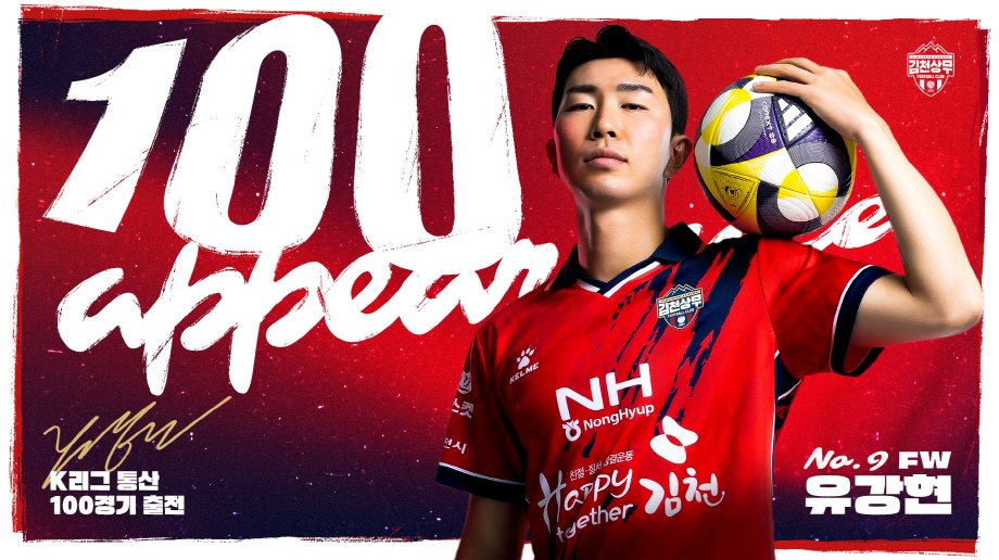 | 김천상무프로축구단(대표이사 이재하, 국군체육부대장 진규상)의 유강현이 ‘하나은행 K리그1 2025’ 4R에 출전하며 K리그 통산 100경기에 출전했다. 그는 “늘 눈앞에 있는 한 경기 한 경기만 보고 왔는데 어느새 100경기나 출전했다는 사실에 시간이 참 빠르다 싶으면서도 감사한 마음이다.”라고 말했다.
