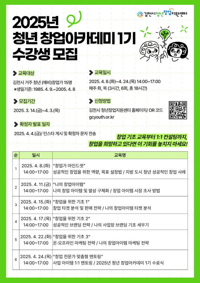 김천시 청년창업지원센터 “2025년 청년 창업동아리 1기” 수강생 모집