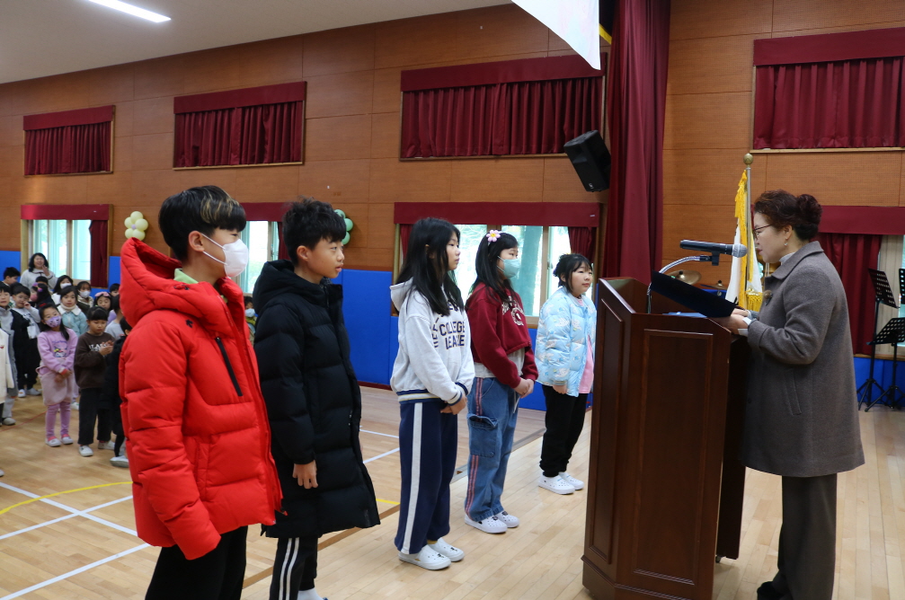 | 봉계초등학교(교장 최명숙)는 3월 17일 본교 강당에서 2025학년도 1학기 학생자치회 임원 구성 및 당선증을 전달하였다. 지난 7일 1학기 학생자치회 임원 선출을 위한 선거를 실시, 학생들의 적극적인 참여와 민주적 절차에 따라 공정하게 진행되었으며, 학생자치회의 새로운 리더들이 선출되었다.