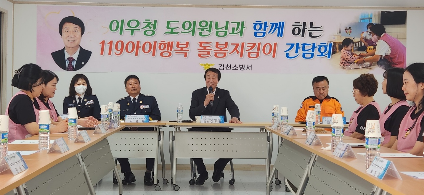 | 경북 김천소방서는 3월 25일 오전 ‘119아이행복 돌봄터’를 운영하고 있는 율곡119안전센터에서 이우청 도의원과 함께하는 119아이행복 돌봄지킴이 간담회를 가졌다.