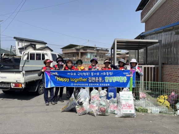 | 김천시 조마면(면장 김영백) 한국자유총연맹 여성회 분회(분회장 이성희)에서는 3월 26일 회원 10여 명이 참여한 가운데 조마초등학교 인근~조마면 체육공원 하천 일대에서 풀베기, 쓰레기 수거 등 자연정화 활동을 펼쳤다.