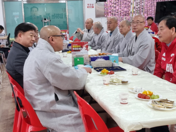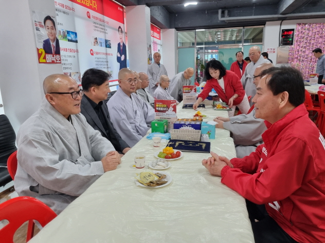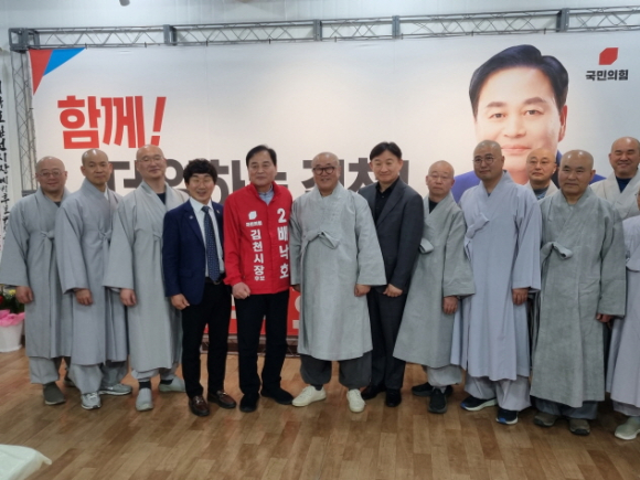 [포토뉴스]김천 직지사 장명주지스님 배낙호 후보자 압승기원