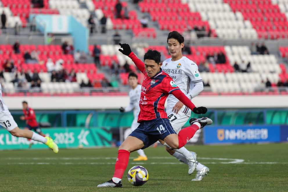 전반 초반 다소 잠잠한 양상으로 진행되던 경기는 전반 15분, 모재현의 슈팅을 기점으로 변화했다. 볼 점유율을 놓고 다투던 전반 19분, 첫 위기가 찾아왔다. 강원의 역습이 페널티 박스 안쪽으로 이어졌다. 김동헌이 상대 공격수와 1대 1로 맞선 상황에서 슈팅을 완벽하게 차단하며 위기를 넘겼다.