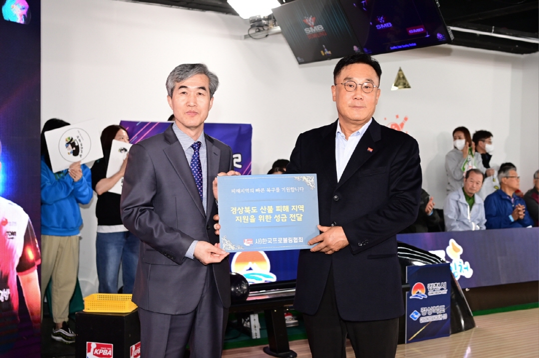 특히, 이번 대회에서 한국프로볼링협회는 영남 지역 산불 피해 복구를 위한 모금 전달식을 진행했다. 이번 모금은 최근 영남 지역에서 발생한 대규모 산불 피해로 어려움을 겪고 있는 주민들에게 조금이나마 도움이 되고자 마련됐다. 대회에 참가한 선수들과 관계자들은 자발적으로 모금에 동참했으며, 이를 통해 모인 기부금은 피해 복구를 위해 전달될 예정이다.