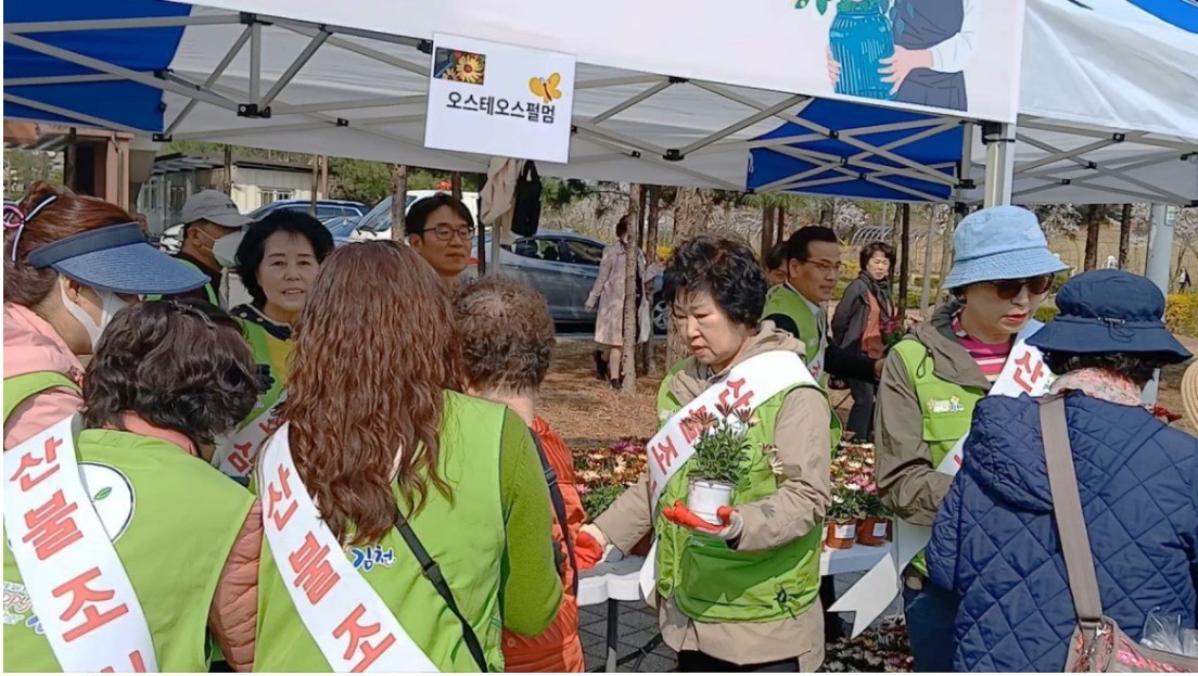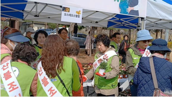 율곡동 자연보호협의회(회장 오애순)와 함께한 이번 행사에서는 주민들을 대상으로 오스테오스펄멈, 아르메리아 등 꽃 화분 400본과 산불 예방 안내문을 배부하며 산림자원 등 자연의 중요성을 되새기는 시간을 가졌다. 또한, 행사 후 율곡동 자연보호협의회에서는 대형산불로 피해를 본 경북 지역 이재민을 돕기 위한 성금 1백만 원을 기부해 그 의미를 더했다.