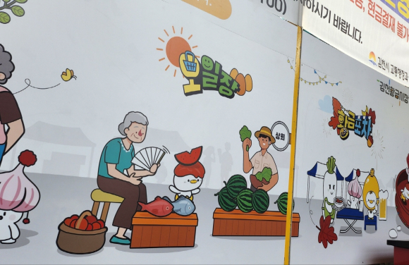 한 치의 빈틈없이 상인과 시민들로 북적대는 통에 비좁은 길을 겨우겨우 빠져 다니는 전통시장의 모습에서 활기 넘치는 김천의 모습을 그대로 보여주고 있다.