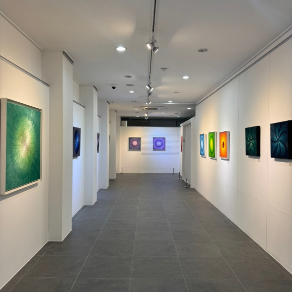 권민장 작가는 “인간의 본질에는 빛이 존재한다”는 믿음을 바탕으로, 내면 깊숙이 존재하는 근원적인 빛을 현실 속 감각과 성질을 통해 시각화했다. 단순한 원형의 빛을 중심으로 한 작품들은 근원의 단순성과 무한한 확장성을 담아내며, 혼합 매체 위에 작가 특유의 긁어내기 기법과 지두점묘 기법을 활용해 빛의 에너지가 뻗어나가는 듯한 생동감을 구현했다. 이를 통해 현실과 이상이라는 두 세계가 ‘빛’을 매개로 연결될 수 있음을 표현하며, 인간 존재와 그 근원에 대한 작가의 깊은 탐구를 담고 있다.