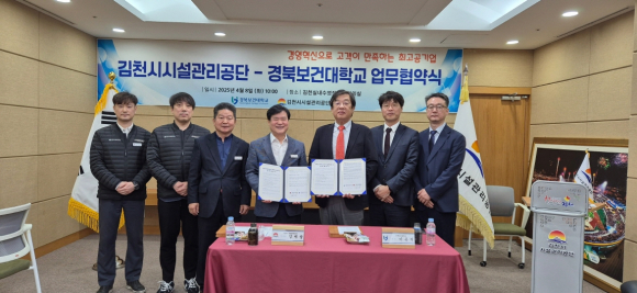 | 김천시시설관리공단(이사장 김재광)은 지난 4월 8일 경북보건대학교(총장 이은직)와 업무협약을 체결하였다고 밝혔다.