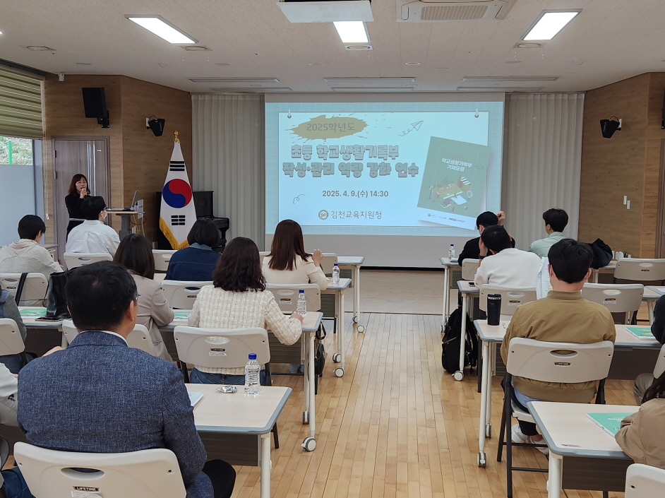 | 경상북도김천교육지원청(교육장 모태화)은 4월 9일 김천학생문화예술센터에서 관내 초등학교 학교생활기록부 업무담당자 및 희망 교사 30명을 대상으로 「2025 초등 학교생활기록부 작성・관리 역량 강화 연수」를 실시하였다.