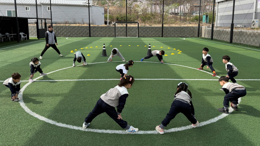 | 김천동신초등학교병설유치원(원장 김기윤)은 4월 9일 축구교실에 참여하였다.