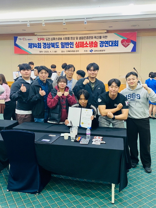 제14회 경상북도 일반인 심폐소생술 경연 대회는 도내 심폐소생술에 관심 있는 대학생, 청소년부 경연에 참연하여 심정지 발생 상황을 재현하여 심폐소생술을 시행해 경연하는 것으로, 김천소방서와 김천대학교 경찰소방학과에서 오징어 게임을 재구성해 장려상을 수상하였다고 밝혔다.