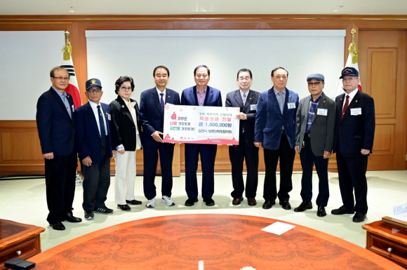 | 김천시 보훈단체장 협의회(회장 조원구)에서는 4월 10일 영남 지역의 대규모 산불로 인해 피해를 본 이재민들을 지원하고 피해 복구에 힘을 보태고자 100만 원의 성금을 전달했다.