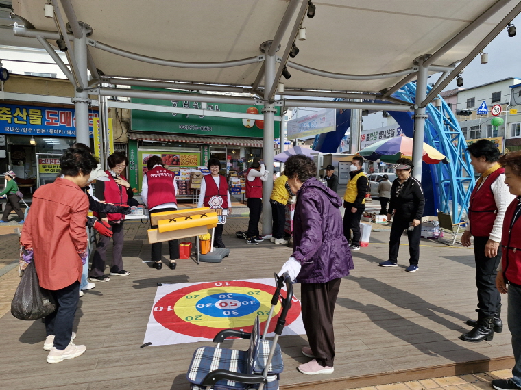 게임에 참여하고 돌아가시는 분들께는 봉사센터 홍보지와 손으로 직접 만든 수제수세미, 자개거울을 선물로 증정하면서 전통시장을 자주 찾아달라는 말을 전하기도 하였다.