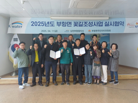 | 부항면 주민자치위원회(위원장 이영수)와 한국수자원공사 김천부항댐지사(지사장 김종율)는 4월 11일 부항면 행정복지센터에서 부항댐 꽃길조성사업 실시협약을 체결했다.