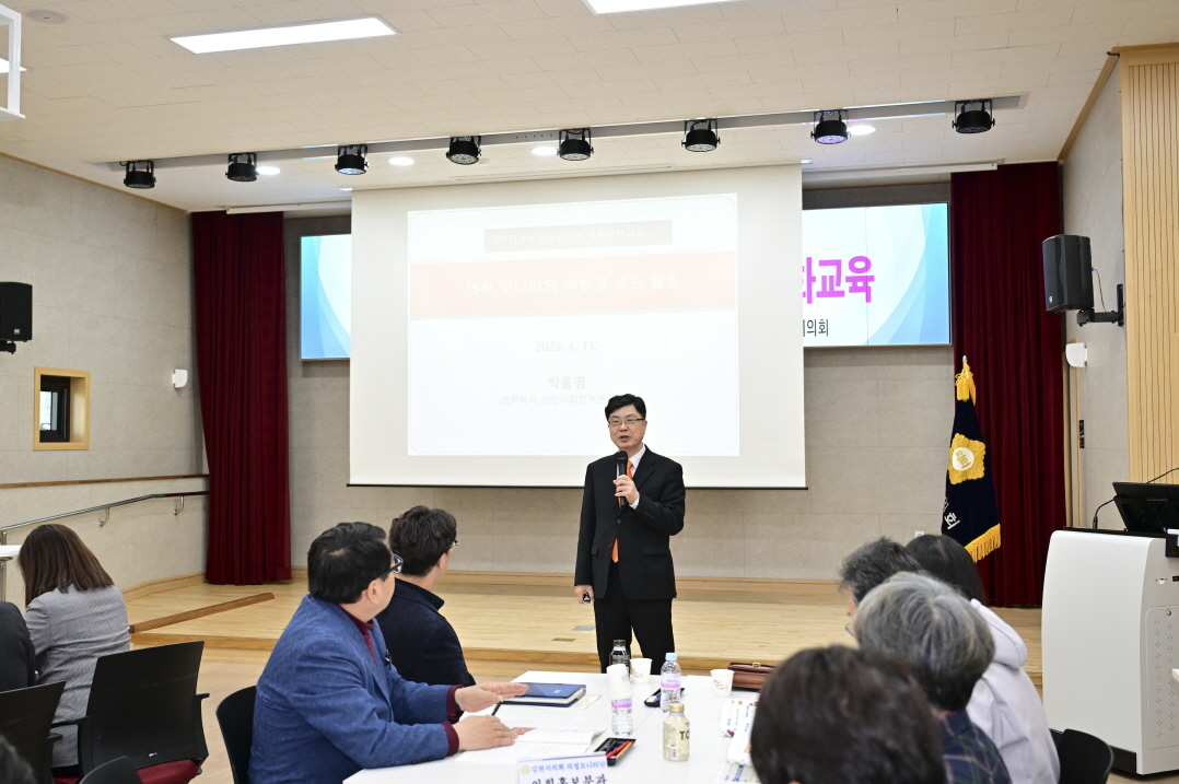 이어진 역량 강화교육에서는 선진사회정책연구원 박동명 원장이 ‘의정모니터단의 역할과 활동방법’에 대한 주제로 특강을 진행하였으며, 의정모니터단의 역할과 모니터링 기법, 의정모니터단 운영 사례, 효과적인 제안서 작성법 등 실제 사례 중심으로 특강을 풀어내며 큰 호응과 높은 관심을 이끌어 냈다.
