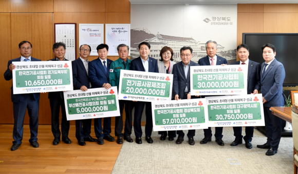 | 한국전기공사협회 125백만원(중앙회, 경북도회, 경기북부회, 대구시회), 전기공사공제조합 20백만원, 한전 부산울산본부 부산배전공사협의회 5백만원 등 전기 관련 6단체가 경북도 산불 피해 지역에 1억5천만원의 성금을 사회복지공동모금회를 통해 기부했다.