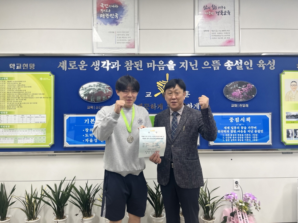 끝으로 장영규 교장은 "우리 육상부 학생이 전국 대회에서 우수한 성적을 거두어 매우 자랑스럽게 생각한다. 동계강화 훈련기간 쉼 없이 지도와 관리 감독에 열정과 힘을 쏟아 준 감독과 운동부지도자께 감사의 말씀을 전한다. 앞으로 있을 제54회 전국소년체육대회에서 육상부 학생이 좋은 성적을 거둘 수 있도록 응원하고 지원을 아끼지 않겠다.”고 전했다. |