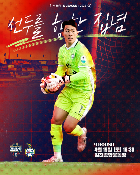 | 김천상무프로축구단(대표이사 이재하)이 4월 19일 토요일 16시 30분, 김천종합운동장에서 대구하나시티즌(이하 대전)과 ‘하나은행 K리그1 2025’ 9R 홈경기를 치른다. 김천상무는 K리그와 코리아컵을 포함해 홈에서 3연승을 달리는 만큼, 대전전 승리로 홈 연승을 이어간다는 다짐이다.