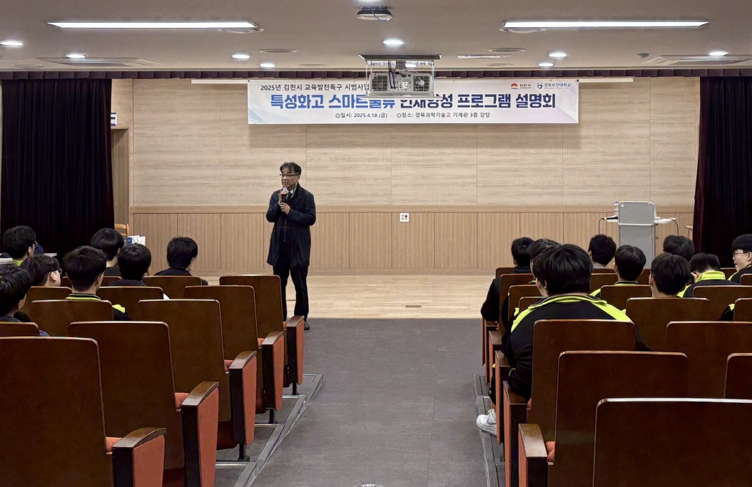 | 경북보건대학교(총장 이은직)는 4월 18일 경북과학기술고등학교 기계관 3층 강당에서 경북과학기술고등학교 2학년 재학생들을 대상으로 특성화고 스마트물류 인재 양성 프로그램 설명회를 진행했다고 밝혔다.